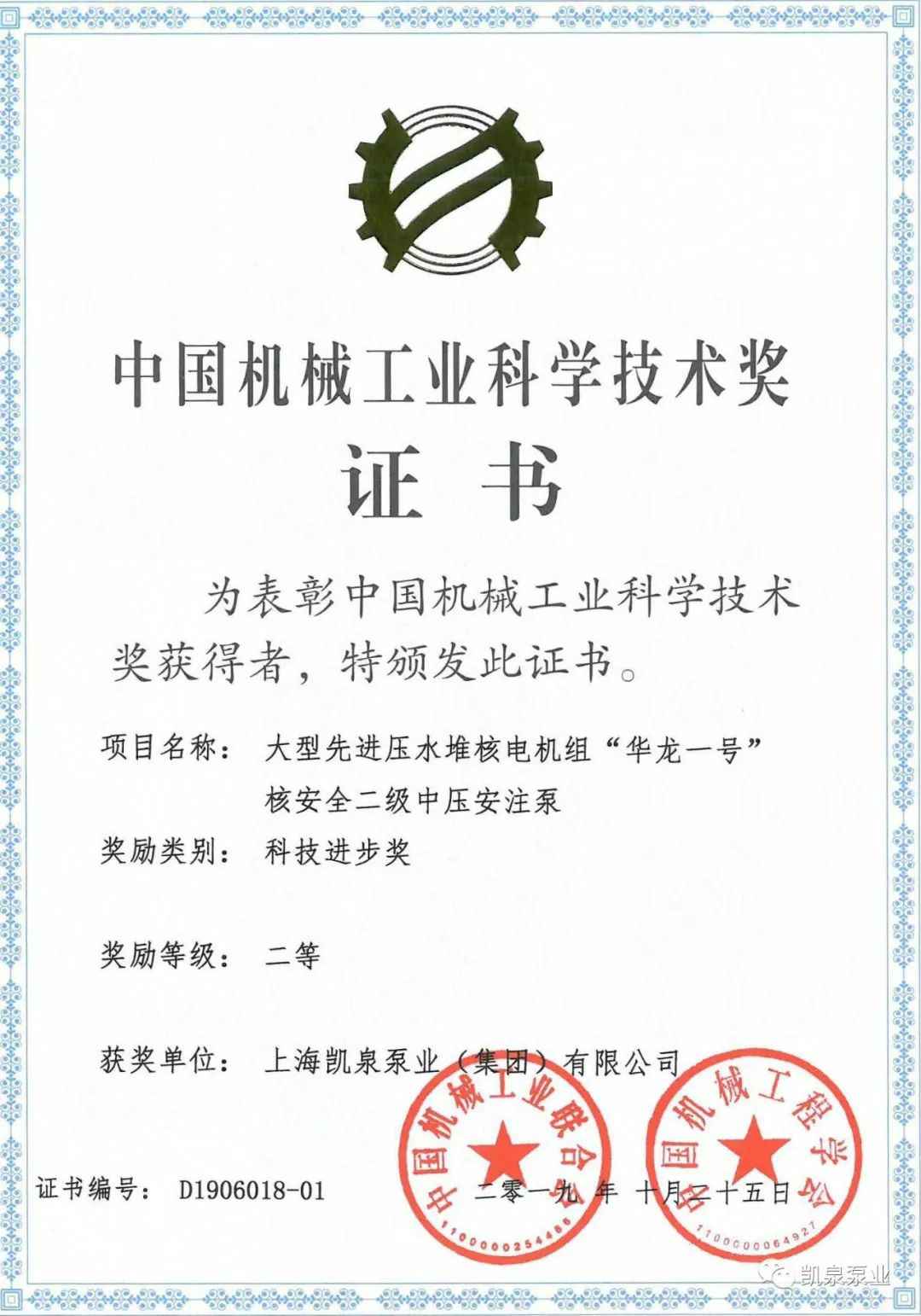 近日,世界杯官网-世界杯(中国)一站式服务官网与中广核工程有限公司联合研制的《大型先进压水堆核电机组“华龙一号”核安全二级中压安注泵》项目荣获中国机械工业科学技术奖——科技进步奖二等奖。大型先进压水堆核电机组“华龙一号”核安全二级中压安注泵国产化研制的成功,对发展民族工业能力,对增强我国核能装备的竞争能力都起到了一定的积极作用。另外,研制过程中一些关键技术的解决,如Q-H曲线陡降的设计方法,多工况点低比速高效和汽蚀性能优异的水力模型开发研究、泵总体结构、核级泵可靠性、先进制造工艺、涵盖加气、热冲击、杂质、高温高湿特殊环境综合试验能力及测试等关键技术,对行业的技术水平、制造能力、试验能力的提升都有一定的积极推动作用。泵结构及关键技术的运行涉及各类授权专利6项。